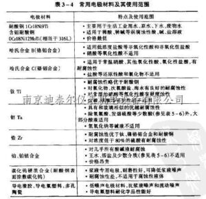 事实上,更严重的是在腐蚀过程中,电极上会出现相当大的直流漂移电压,使测量输出发生大幅度的摆动,影响到测量的读数。这里仅以表3-4来介绍几种常用电极材料以及它们对一些代表性介质的耐腐蚀性能。